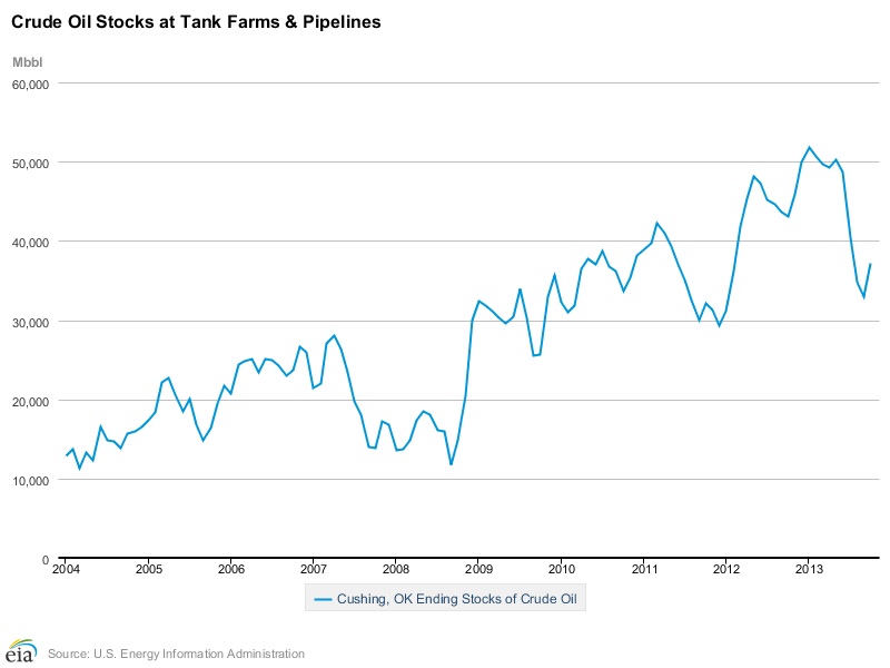 While Cushing crude oil inventory increased to 50 MMbbl supply from new growth in Bakken, Canada, and West Texas. The third segments of pipeline projects are pipelines to move West Texas Intermediate and West Texas Sour straight to Houston bypassing Cushing all together. Which effectively adds more take away capacity from Cushing.