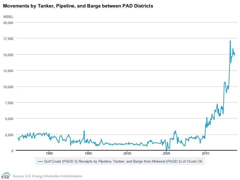 The explosive growth in pipeline capacity has been years in the making as crude oil production in the PADD2 and PADD 3 areas, along with Canadian crude oil, has boomed to record levels.