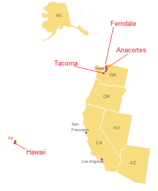 For PADD 5 petroleum refineries with a minimum capacity of 40 KBD crude throughput, I have selected the following sites: