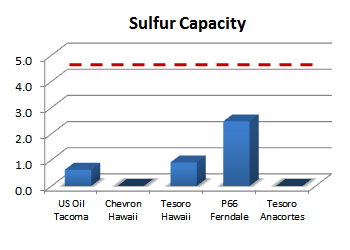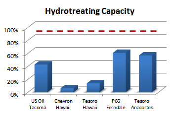 All of the PADD 5 refineries lack strength in conventional hydrotreating capacity. This was a common trend for the Dud refineries of PADD 3.