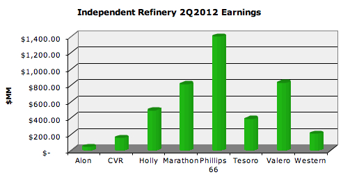 We’re continuing our evaluation of the independent refiner’s financial performance for the second quarter of 2012 (2Q2012). Joining the independent refiner’s club is Phillips 66, which quickly jumps the front of the pack in terms of sheer size and earnings power.