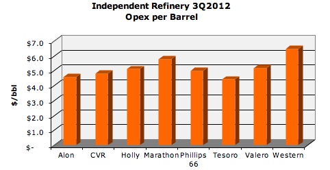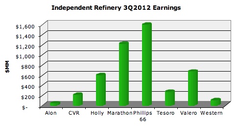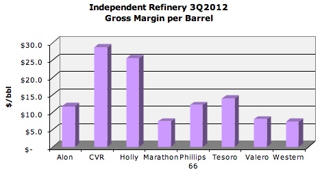 Third quarter results for the U.S. Independent refiner continued the themes from the previous quarters of 2012 (1Q & 2Q). The common themes for the Independent refiner were capitalizing on discounted U.S. mid continent crude oil feedstock and returning profits to the business and shareholders.