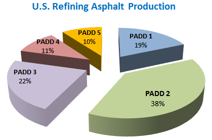 Roughly 85% of the asphalt consumption in the U.S. is comprised of road paving demand, and 40% of total asphalt demand originates in the Midwest.