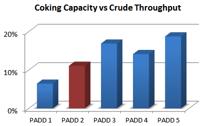 that 20% of U.S. refining capacity resides in the Midwest. That in itself doesn’t carry much intrigue factor. What should interest you; however, is how the configuration of refineries in PADD 2 differ from others in the U.S. oil industry.