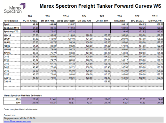****Marex Spectron Tanker curve spreadsheet 2014-11-19 , we have used their $/MT with a API for bonny @ 35.3 degree to get $/bbl.