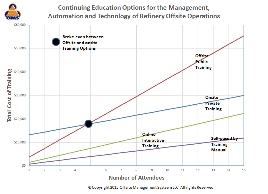 In this article, we will discuss various types of training options available in the market place, their advantages, costs and economics. In the end, we will also discuss what and how does our company, Offsite Management Systems LLC (OMS), offers training and webinars for the development of professionals working in the refinery offsite operations.